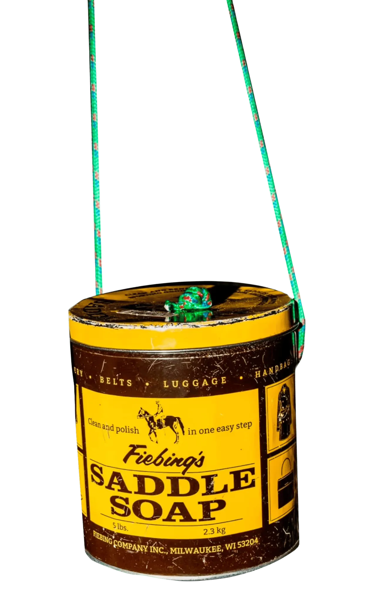 The Saddle Soap Can with Green Rope